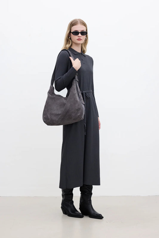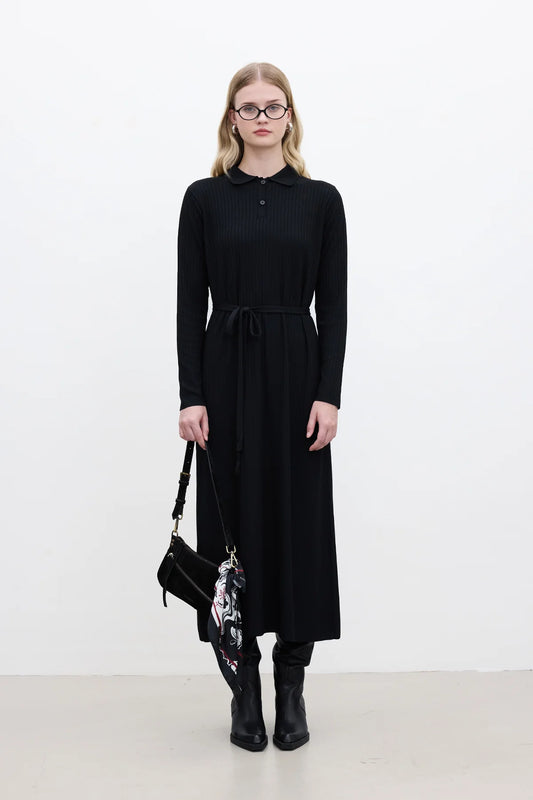 COLLAR KNITWEAR DRESS ANTHRACITE