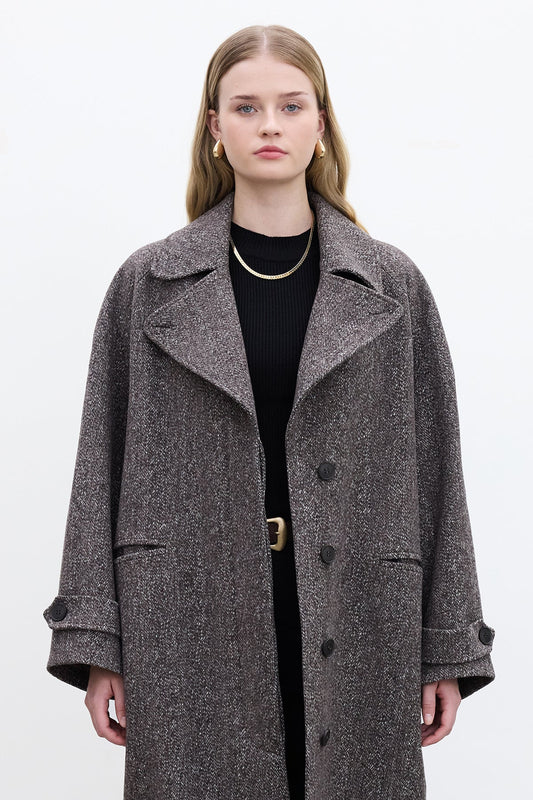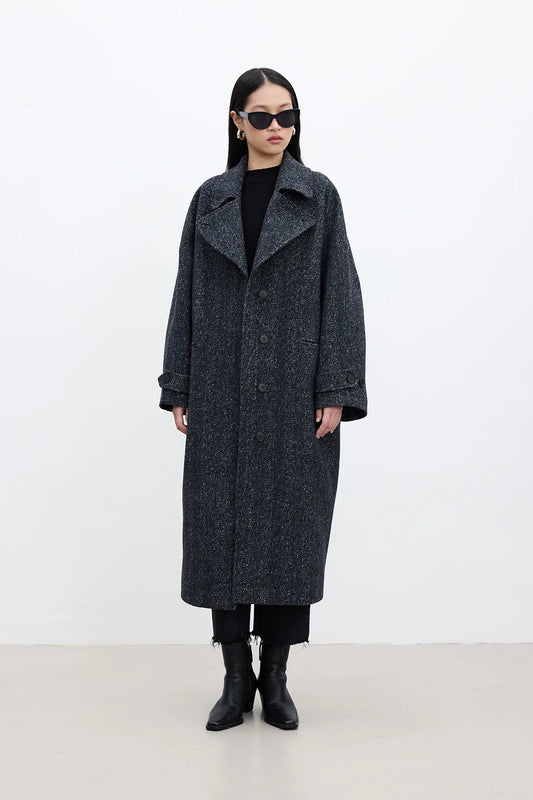 ASYMMETRIC CLOSURE CACHET COAT BLACK
