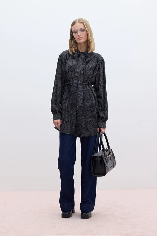 BELLA SHAWL DETAILED KNITWEAR GRAY