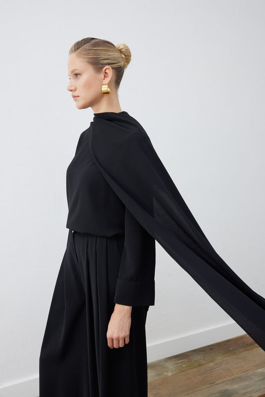 EVA CREPE SHAWL BLOUSE -...