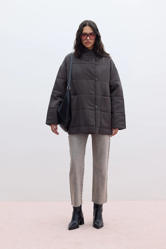 HIGH COLLAR QUILTED COAT ANTHRACITE