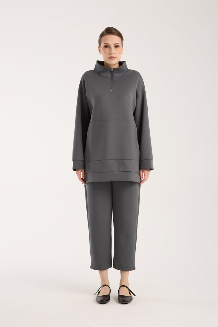 Minimal, elevated, and endlessly wearable, our bestselling Scuba Zipped Set returns in new-season tones. Crafted from luxurious scuba fabric, this two-piece set features a high-neck half-zip top and tailored straight-leg trousers. The fabric’s natural structure keeps its shape while offering all-day ease and movement.