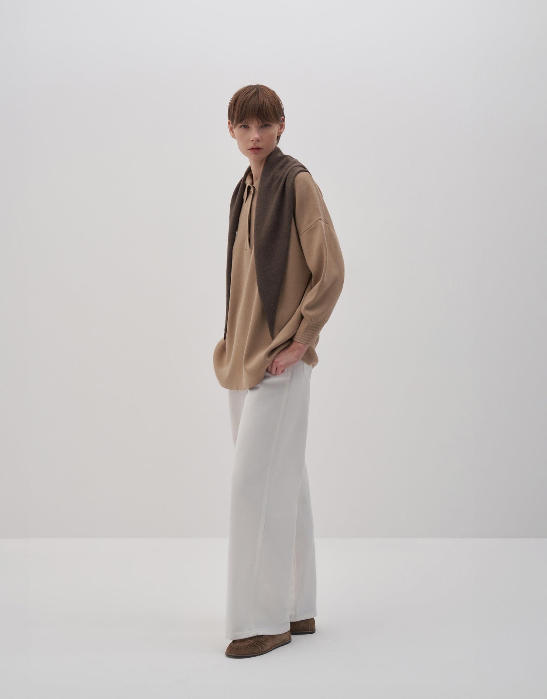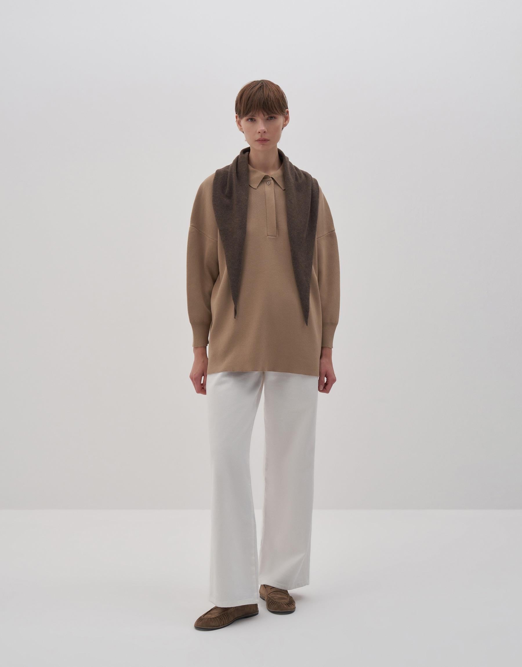 Cotton Polo Collar Sweater Camel Color
