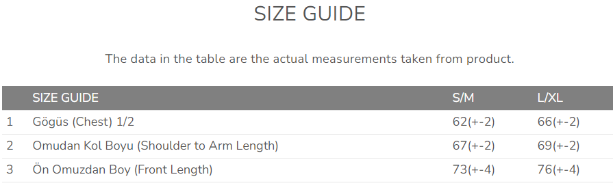 The measurements specified in the size chart are general body measurements. Since knitwear has a soft texture and flexible structure by nature, final measurements may differ.