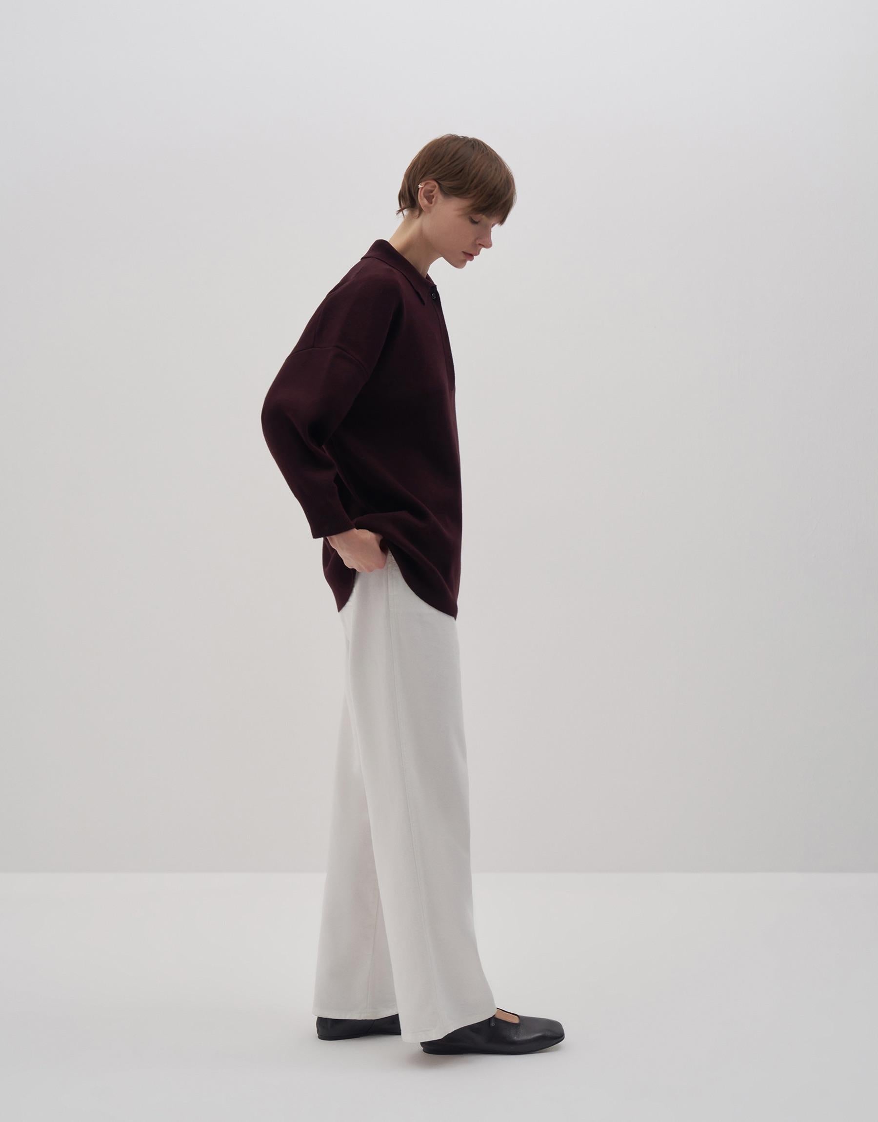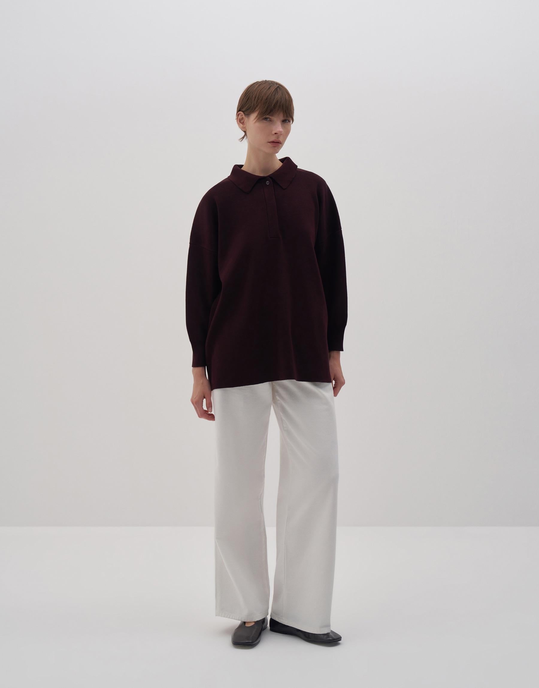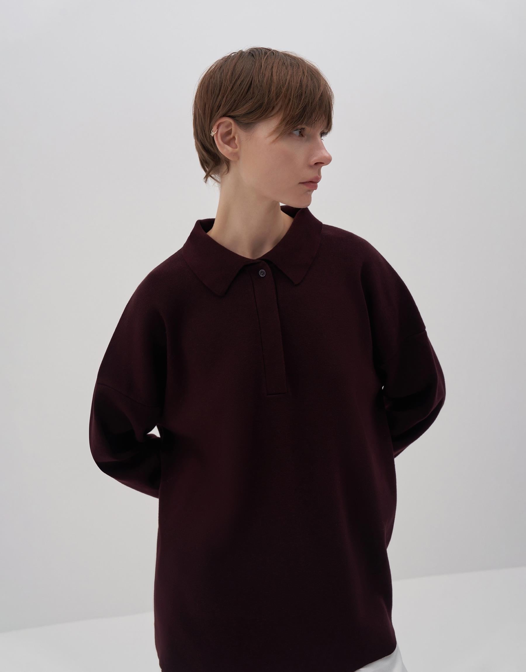 Cotton Polo Collar Sweater Damson Color