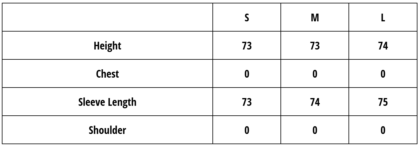 Height: 79 cm Chest: 114 cm Sleeve Length: 61 cm