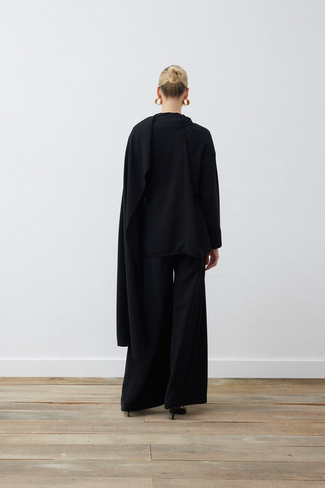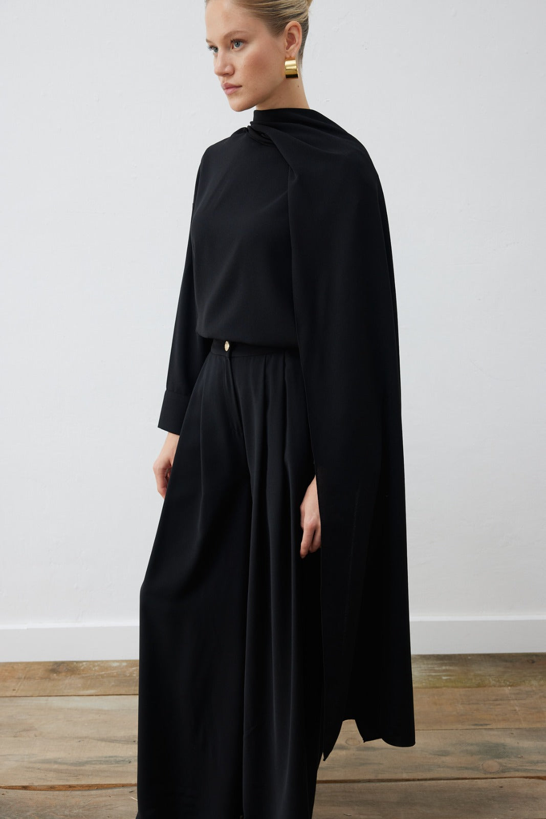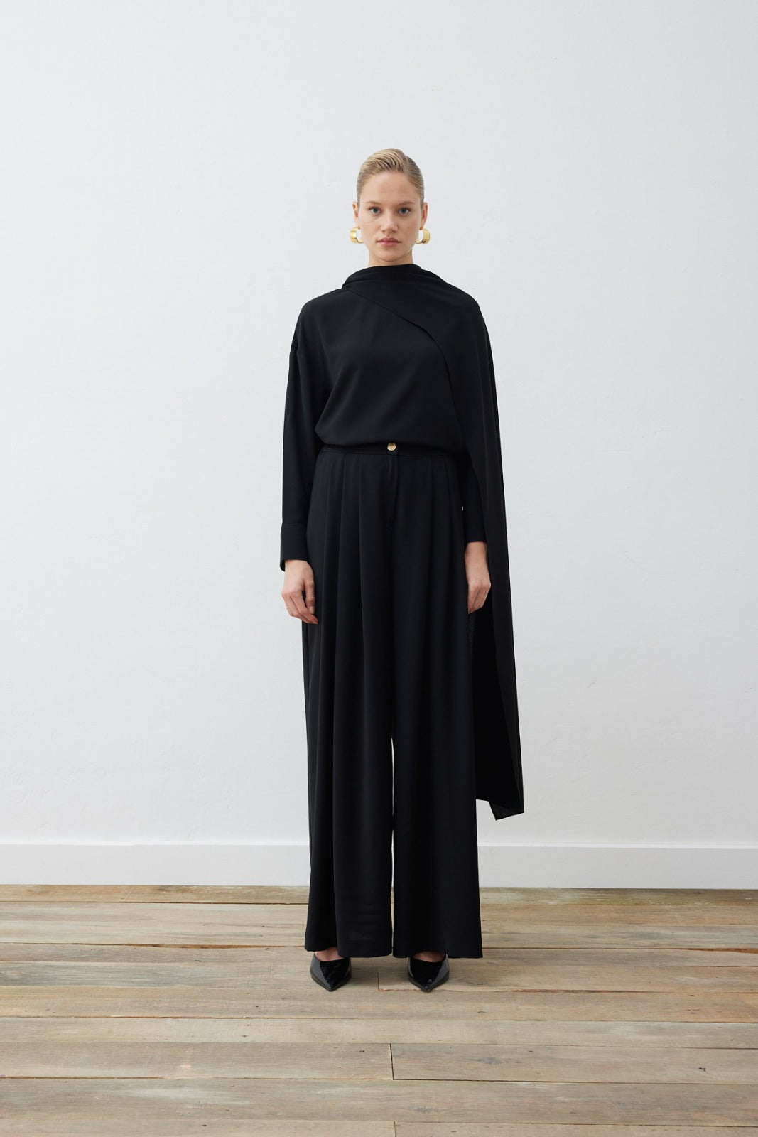 EVA CREPE SHAWL BLOUSE - PALAZZO PANTS SET - BLACK