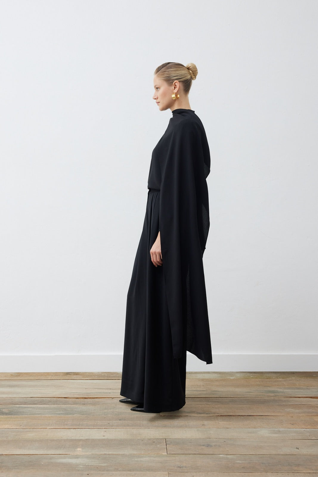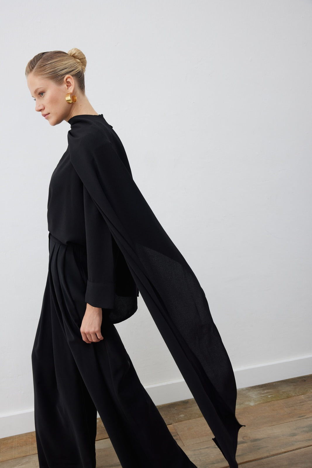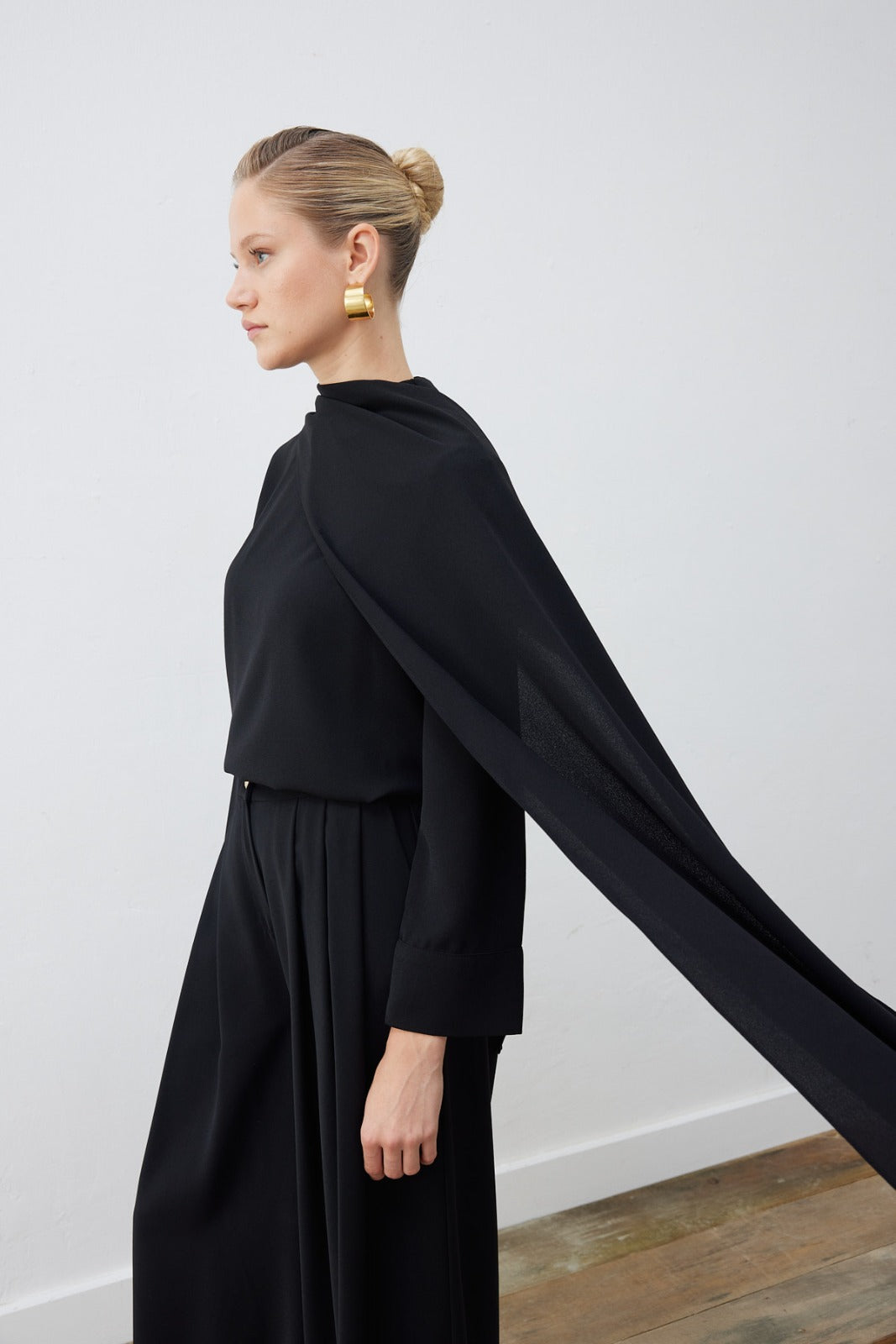 EVA CREPE SHAWL BLOUSE - PALAZZO PANTS SET - BLACK