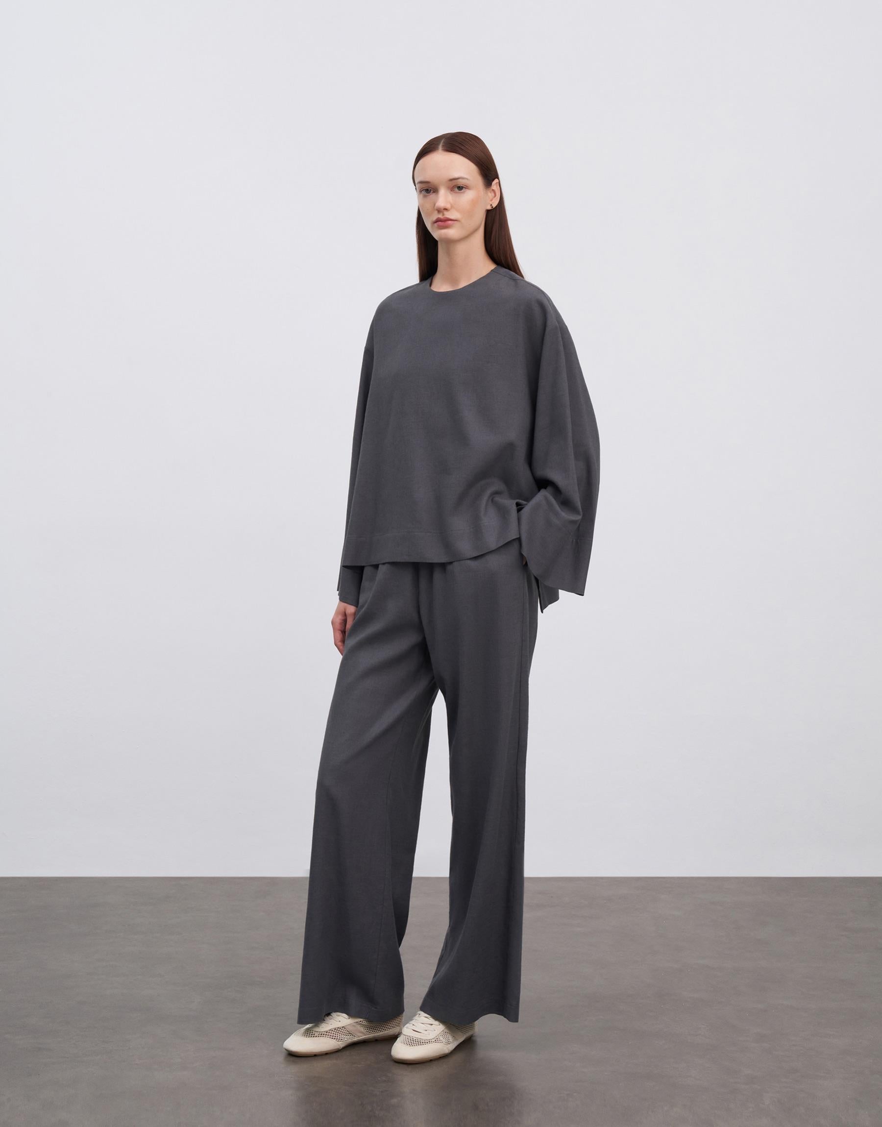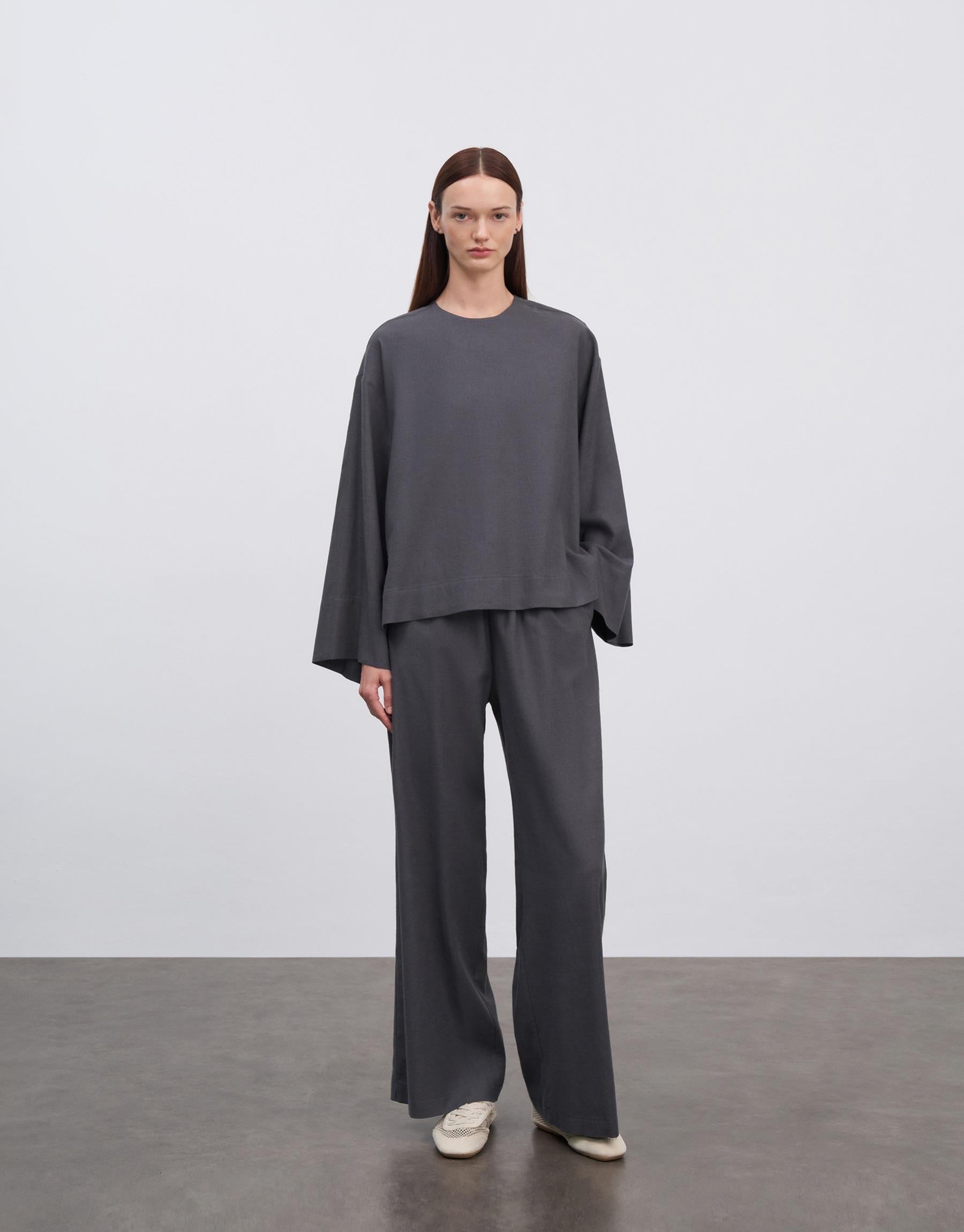 Linen Basic Blouse Anthracite