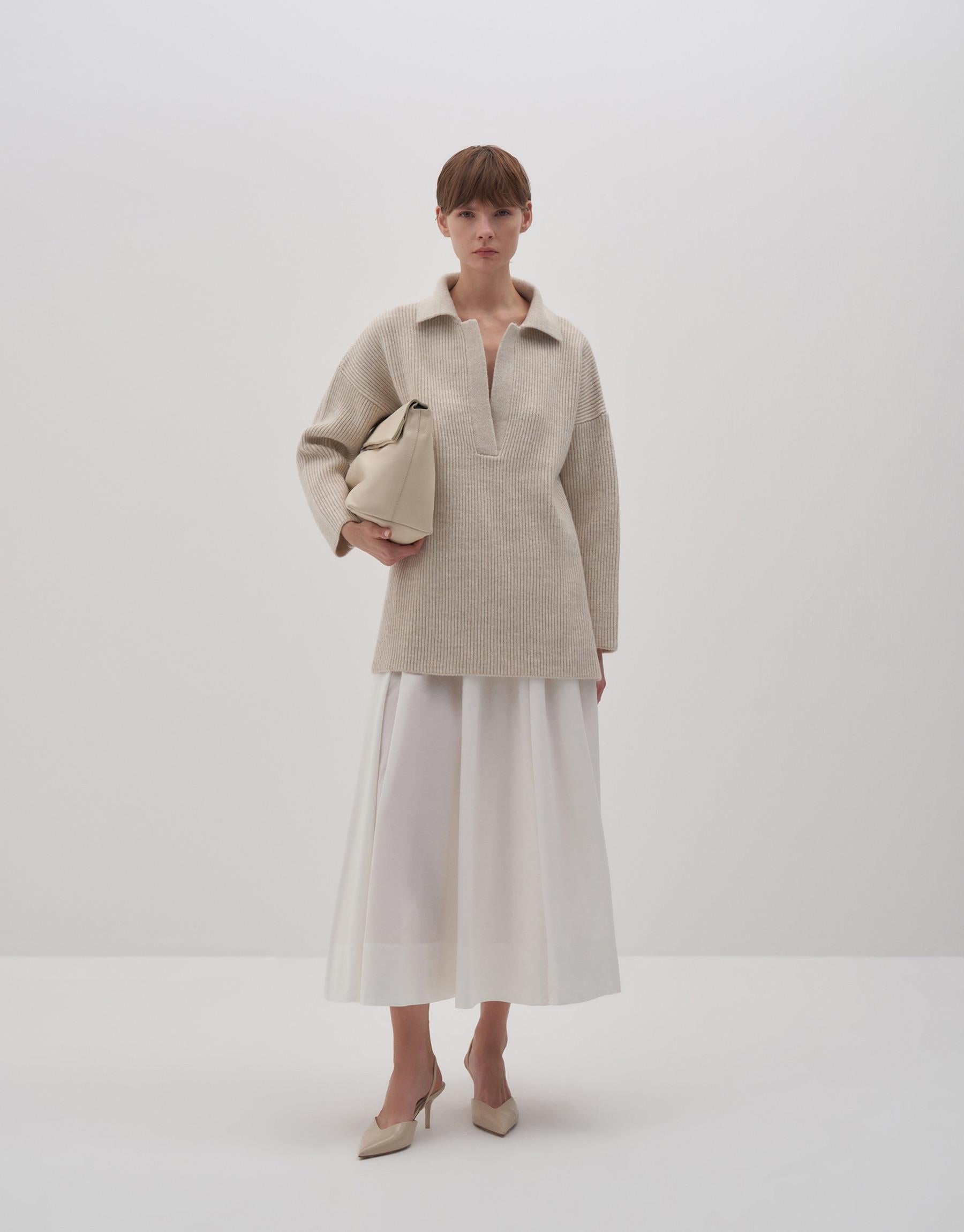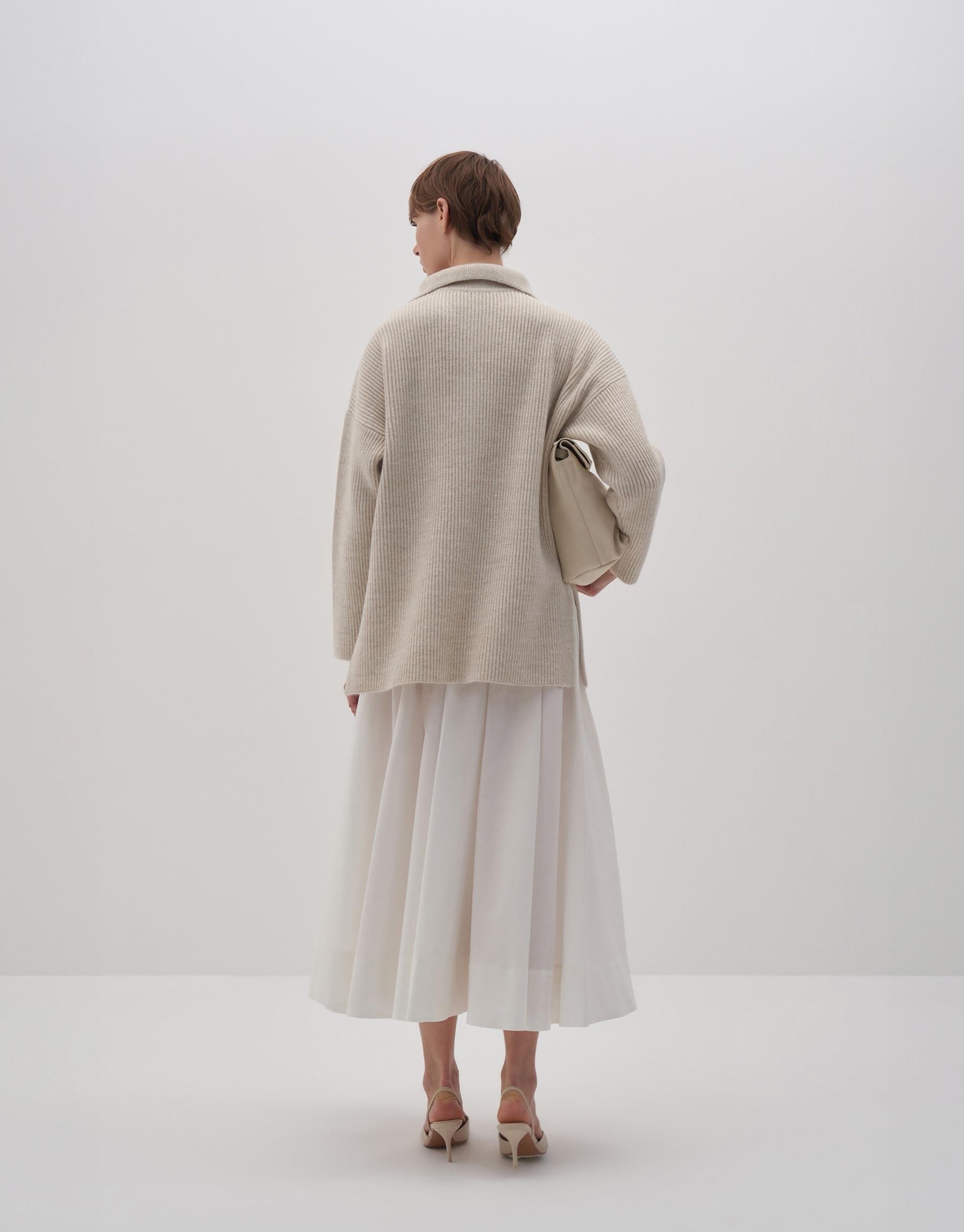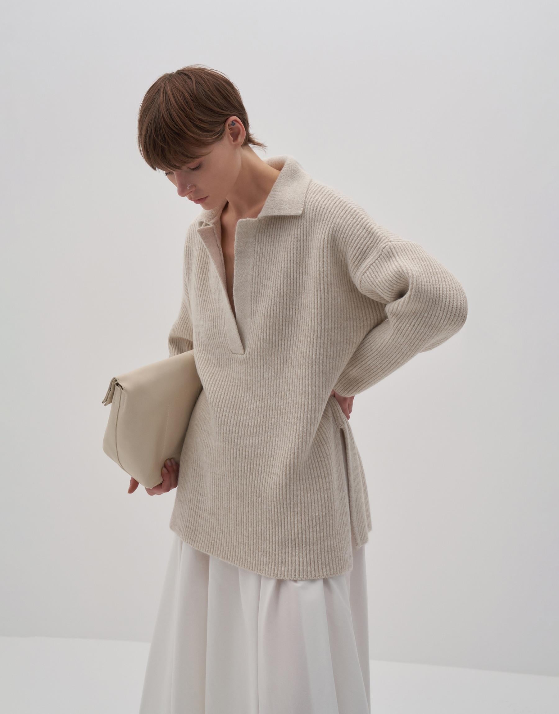 The measurements specified in the size chart are general body measurements. Since knitwear has a soft texture and flexible structure by nature, final measurements may differ.