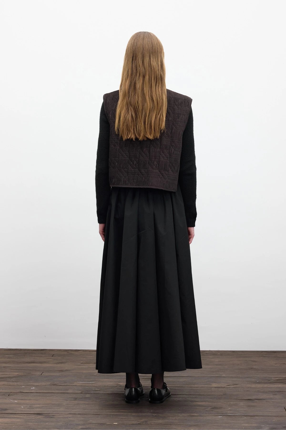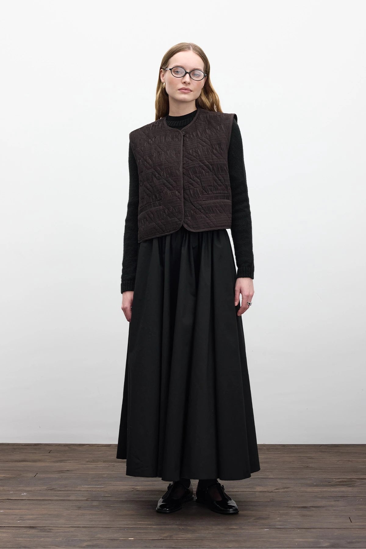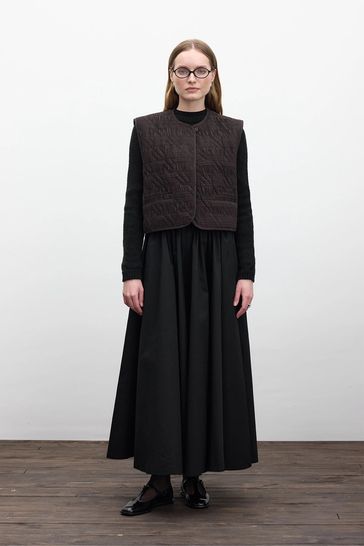 QUILTED EMBROIDERED VEST BITTER COFFEE
