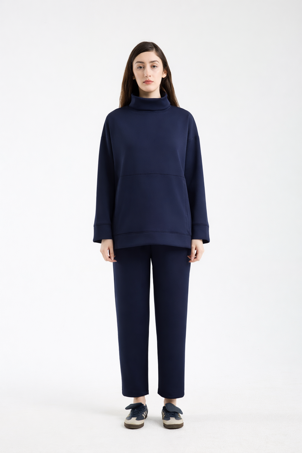 The Sculpted Neck Scuba Set is cut from a thicker scuba with a subtle sheen, designed to hold its shape and sit clean on the body. The sculpted neckline frames the face beautifully, while the relaxed fit keeps it effortless. Made for repeat wear: polished enough for city days, comfortable enough for everything else.
