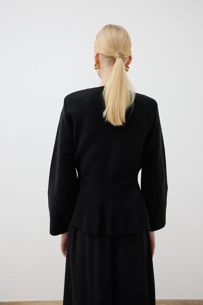 VERA STEEL KNITTED PEPLUM CARDIGAN BLACK